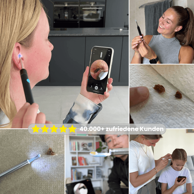 Unsere Community berichtet über den Aha-Moment beim ersten Blick ins Ohr, die einfache Handhabung und das sichere Gefühl nach der Reinigung.