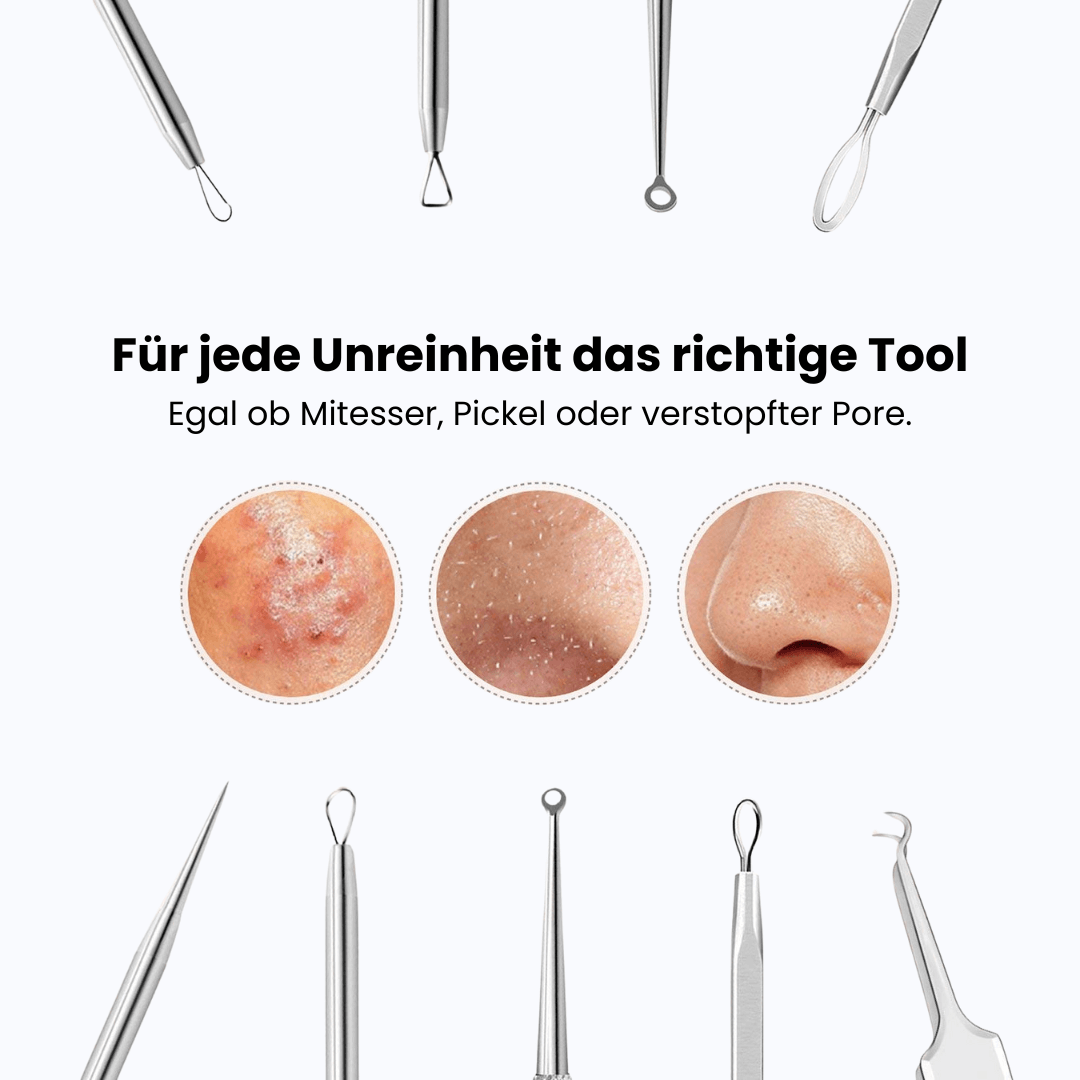 Jedes Werkzeug ist dafür entwickelt, Unreinheiten gezielt zu lösen, während deine Haut geschützt bleibt.