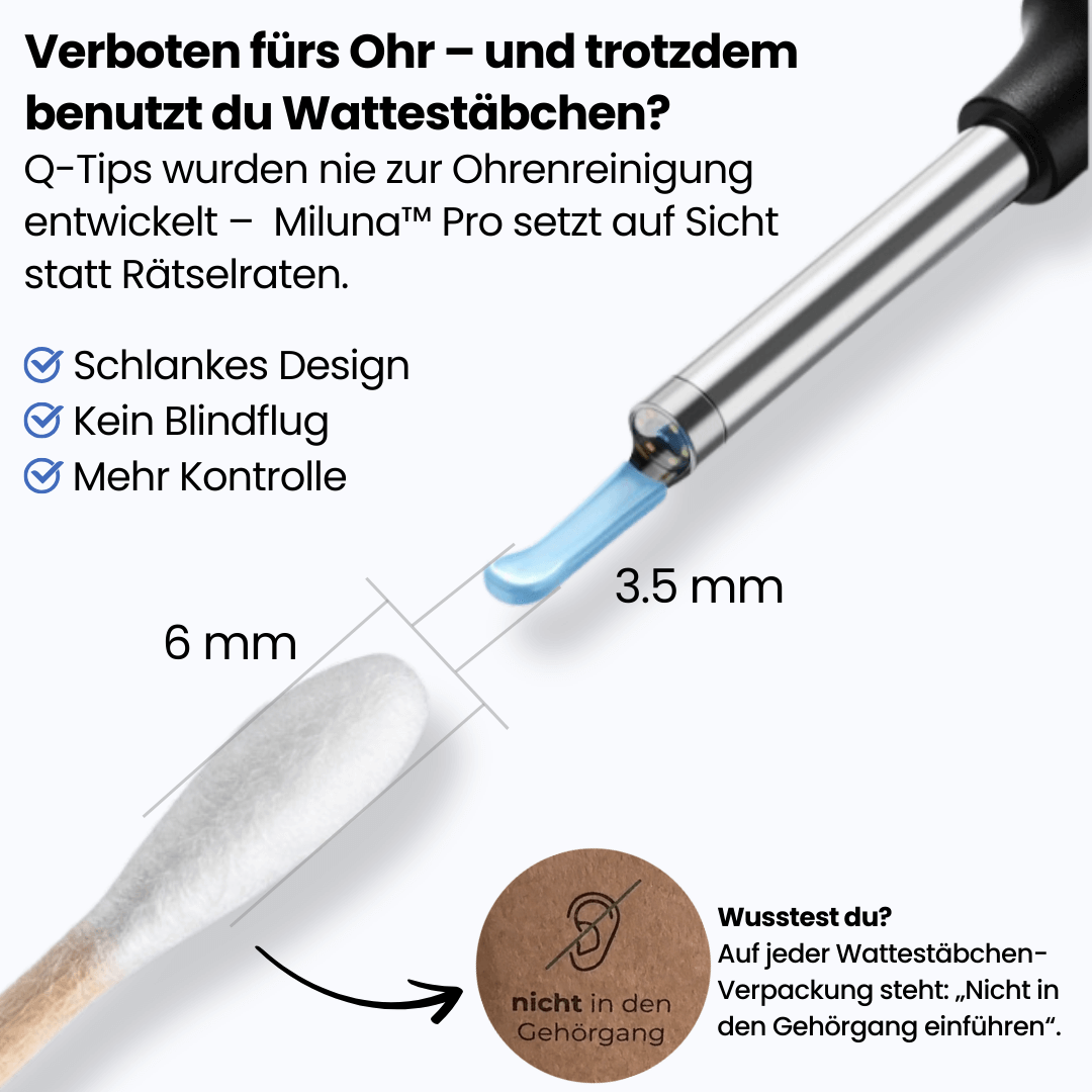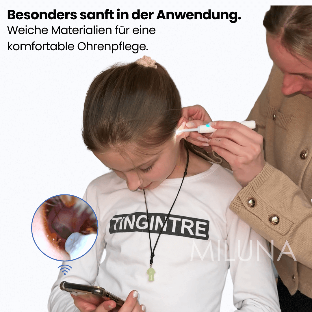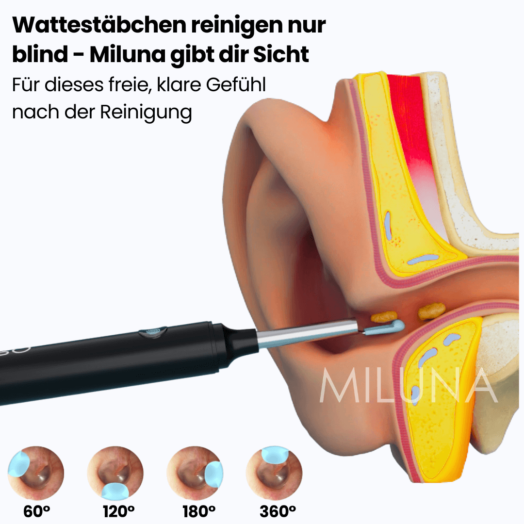 Miluna steht für klare Sicht, sanfte Reinigung und das Vertrauen, endlich zu wissen, was im Ohr passiert."