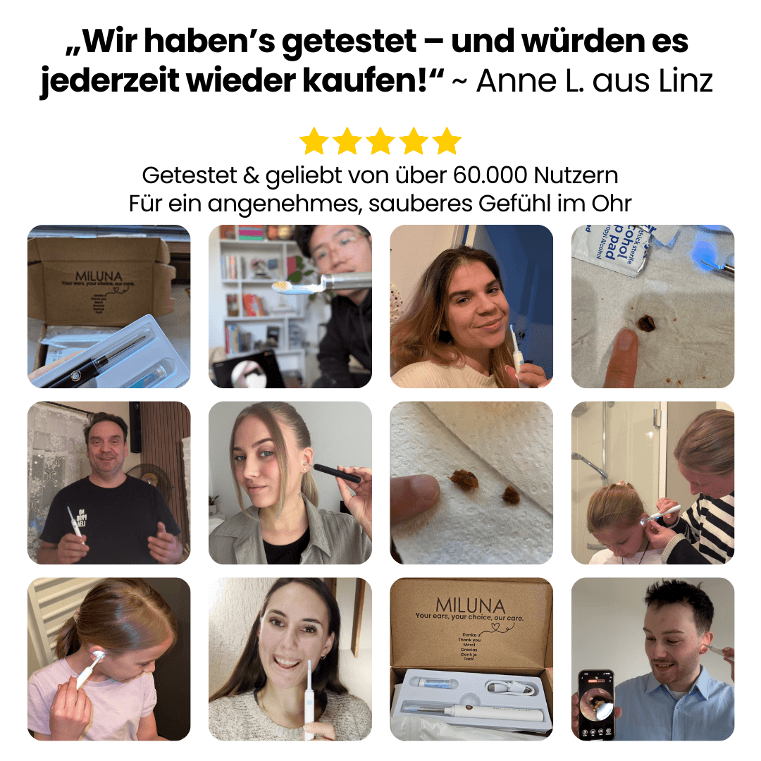 Viele Kund:innen suchen nach einer einfachen und sicheren Alternative zu Wattestäbchen – und möchten wissen, wie der Miluna Pro in der Praxis funktioniert. Ob du wissen willst, wie du die Kamera aktivierst, die Temperatur kontrollierst oder das Gerät richtig reinigst: Hier bekommst du alle Antworten.